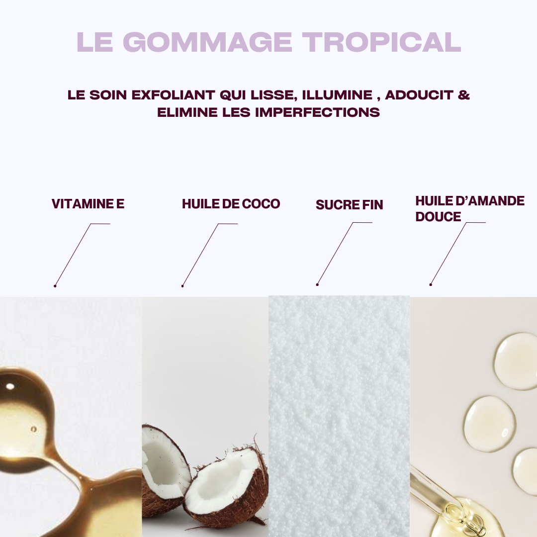 Le Gommage Tropical nettoie, nourrit et révèle la lumière naturelle de chaque peau, sans distinction.